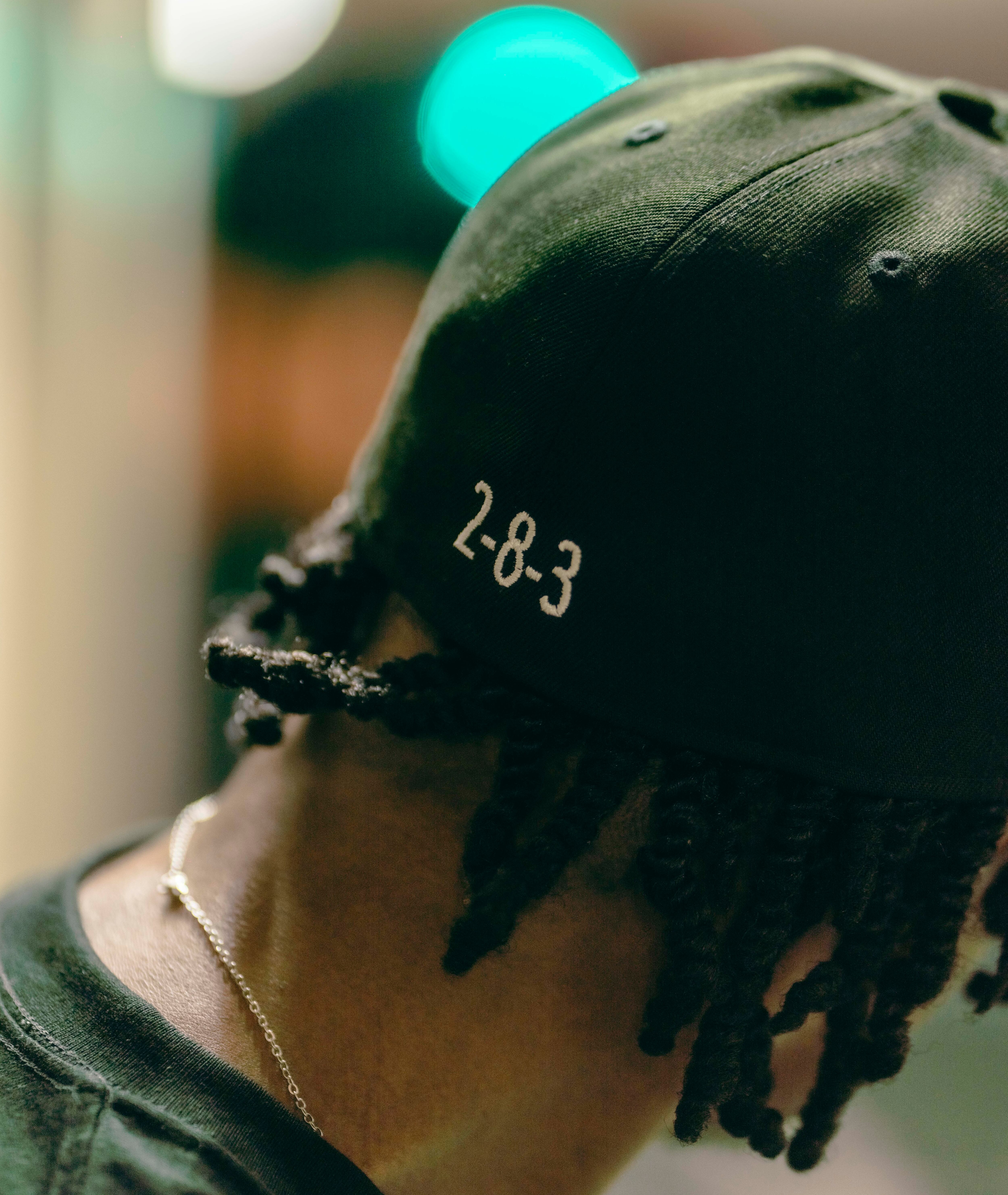 New Era 59Fifty のフロント、後頭部にオリジナルの刺繍を施しました。